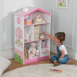 Книжный шкаф от компании KidKraft стилизован под большой 3-х этажный игрушечный домик с 6 комнатами для любимых кукол.