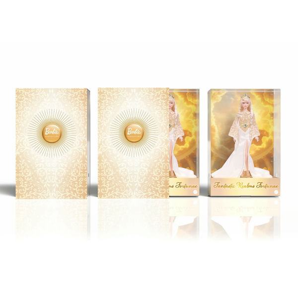 Знакомьтесь с богиней из совершенно нового мира - фантастического. Mattel предоставляет членам Клуба Барби (Barbie Club 59) возможность выбрать, какую куклу они хотели бы добавить в свои коллекции. Голоса поклонников привели к созданию этой царственной суперзвезды, вдохновленной богиней Фортуной. У нее потрясающая фигура, она с головы до ног облачена в воздушное белое платье с бело-золотистыми вставками. Платье украшено эффектными расклешенными рукавами и высоким разрезом, а аксессуары напоминают золотые монеты - символ богини, в образе которой она создана.