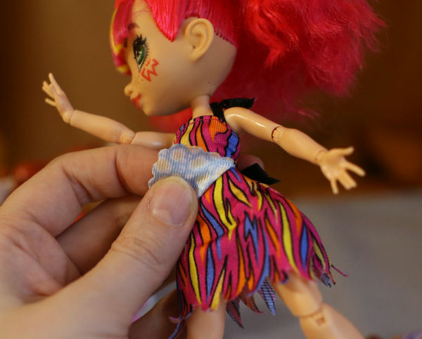У куклы мягкие-мягкие пушистые волосы, яркие, как пламя: