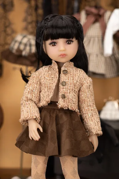 Подчеркните стиль своей куклы с помощью нарядов в клетку Chic Elegance! Этот комплект из нескольких предметов, выполненный в насыщенных коричневых тонах и игривых полосках, идеально подойдет для тех, кто любит многослойность. Атласная блузка с завязывающимся воротом, рукавами со слегка присборенными плечами и сборками на манжетах создает модный образ.