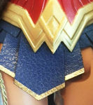 Барби Чудо-женщина, подставка прилагается.Одежда качественная, не красится, бронежилет куклы - несъёмный, это часть куклы. Коллекционеры утверждают, что одежду (сапоги, браслеты и жилет) можно снять, аккуратно рассоединив края пластиковых деталей, но, поскольку одежда не рассчитана на то, чтобы её снимали, поставить её обратно будет проблематично. Юбка - фактурная резина. Таким образом, эта версия Чудо-женщины Барби одета в пластик и резину, в отличие от предыдущих версий, одетых в ткань. Она всегда будет именно этой Чудо-женщиной, потерять костюм не выйдет, т.к. вы не сможете его снять без риска повредить куклу.
