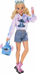 Если вы еще не устали от фанаток Стича, в июле 2025 встречайте еще одну куклу! У нее сумочка в форме ананаса-Стича. Это еще одно дополнение к уже длинной линейке выпусков, посвященных Stitch. Бюджетная версия с одним нарядом. Она вдохновлена творчеством Стича из Lilo & Stitch. У куклы длинные волнистые светлые волосы, заплетенные в игривые косички, и она одета в веселый и красочный наряд. На ней розово-голубая футболка с вышивкой спереди и широкие джинсы, украшенные изящными силуэтами. Дополнением к образу служат ярко-розовые босоножки. В комплекте с куклой идет множество тематических аксессуаров: