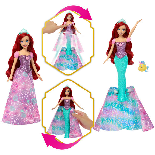 С возможностью превращаться из русалки в человека и обратно! Кукла-трансформер 2-в-1 Ариэль готова к приключениям над волнами и под ними. Новинка 2026 года - Disney Princess Ariel Human to Mermaid Transforming Fashion Doll.