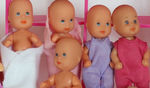 Таких пупсиков у нас собралось уже 5 - три из набора с Еви, они в комбинезончиках, и два - из этого набора со Штеффи, здесь они просто в простынках-пелёнках (мягкая тряпочка с липучкой, малышей заворачивать очень удобно).
