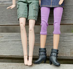 Одежда Даниэлы этого набора - леггинсы 3/4, короткая джинсовая юбочка, топ-футболка, на ногах - чёрные полусапожки на высоком каблуке. Одеваются они легко (резиновые, есть прорезь сзади, так что обувать-разувать куклу очень просто). Наряд в сиренево-фиолетовых тонах, всё очень стильно и качественно.