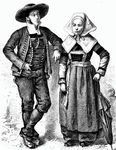 Женский французский традиционный костюм - это широкие юбки со складками, кофты, передники и платки. Крестьянки обязательно носили чепец, поверх которого одевался платок или шляпа.