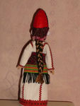 Куклы в народных костюмах №59 - Мордовский летний костюм. Панго - высокий головной убор, конусообразный. Височные украшения в виде пуховых шариков.