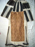 Еще один вариант в этой местности (только в Turnu Ruieni) – вышивка с использованием черных, серых, синих шелковых ниток, черный бархатный фартук с золотым шелковым шитьем.