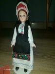 Куклы в костюмах народов мира №14. Венгрия. Экземпляр очень неудачный: одна нога заметно короче (кукла почти не стоит самостоятельно), сильно клонится голова, одна рука двигается с трудом (внутри что-то мешает).