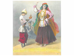 Национальные азербайджанские костюмы. Репродукция эскиза художника Л. А. Окуня.