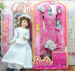 Набор одежды для Барби, в упаковке, рядом с 18-см куклой Дамой Эпохи.