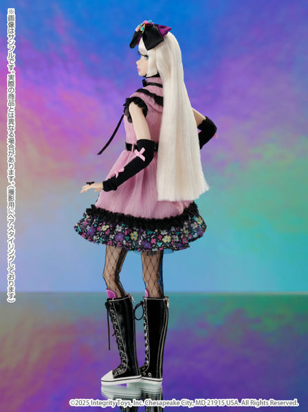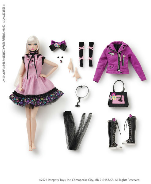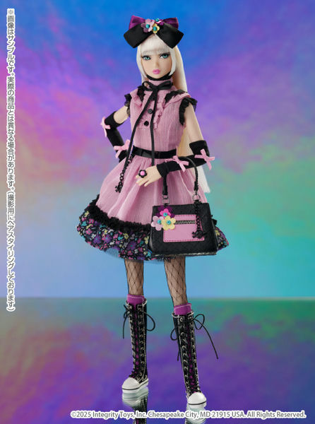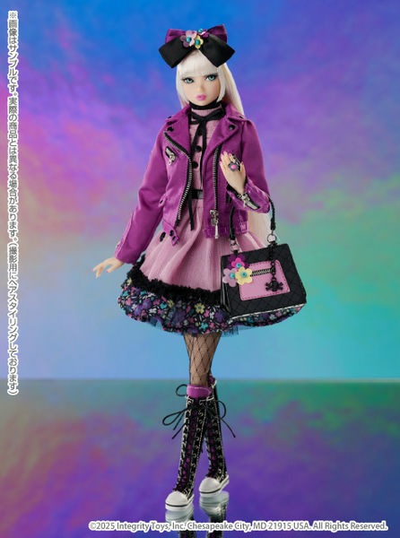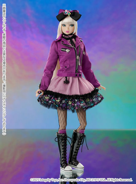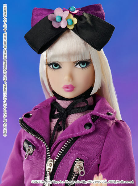 У этой куклы нежное и при этом яркое сочетание фиолетовой куртки и кроссовок. Платье с оборками и лентой. Ее сверкающие платиновые волосы - это первые прямые длинные волосы Мисаки, подстриженные в стиле принцессы. Она такая милая с этим нежным макияжем!