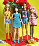 Барби старого образца (м-да, её талия, руки и ноги действительно выглядят странными!), Барби полная и высокая, и кукла Ever After High.