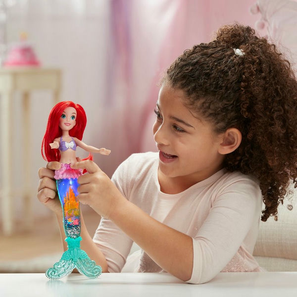 Glitter 'n Glow Ариэль - яркое, сверкающее дополнение к коллекции кукол принцесс Диснея. Соберите и остальных любимых кукол-принцесс: Белль, Рапунцель, Золушку, Мулан и других.