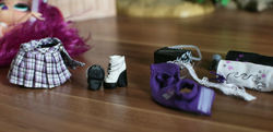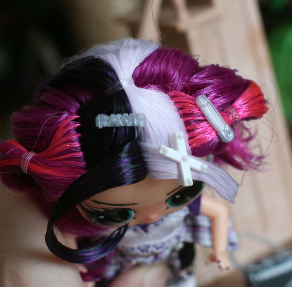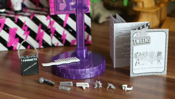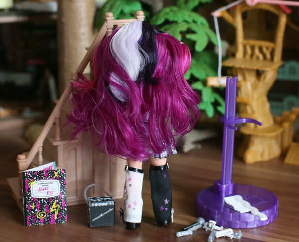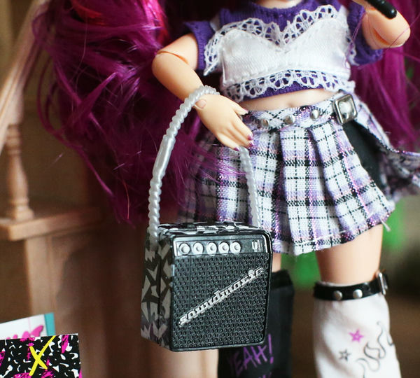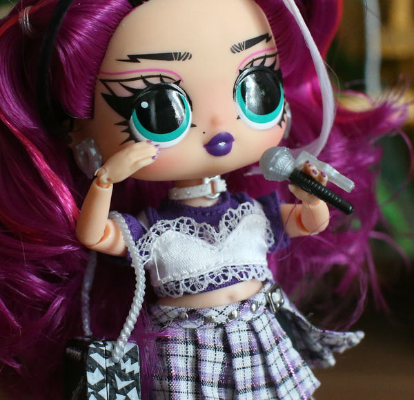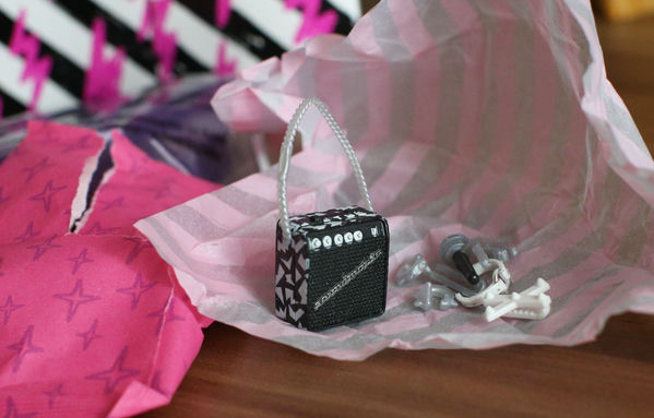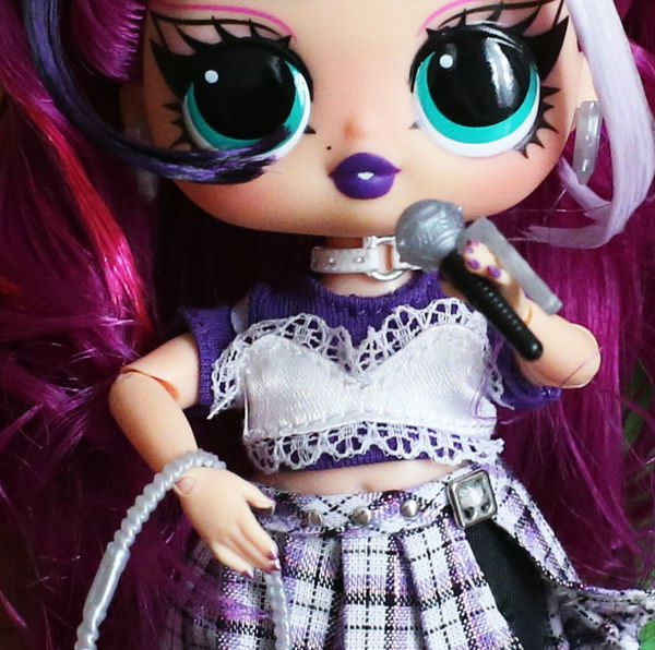 Кукла идет в эффектном панк-наряде поп-звезды, с волосами цвета как у рок-звезды, с гламурным микрофоном!