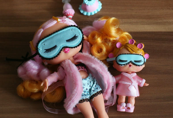 Маски для сна у двух кукол разные. Большая - тканевая, на резинке. Маленькая - пластиковая. При попытке натянуть тканевую маску на Иви резинка тут же оторвалась: