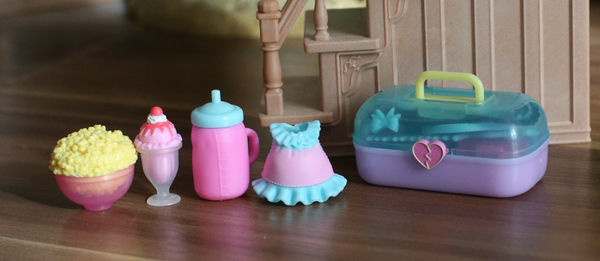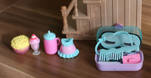 Вместе с куклами идет целая коллекция игровых мелочей (20 сюрпризов):