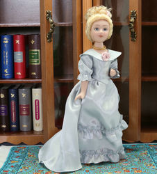Дамы эпохи №86. Лилия-Мария, вид куклы сбоку. Платье с длинным шлейфом, но без нижних юбок ткань провисает.