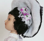 А вот немного доделанный вариант - с дополнительными цветами на шляпке и бантом спереди (вместо отсутствующего):