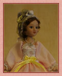 У меня она ассоциируется с Эмилией из Ярмарки Тщеславия. Каштановые волосы, такое милое розовое платье да и личики у кукол очень нежные. И вообще, мне кажется, Эмилии в коллекции не хватает.