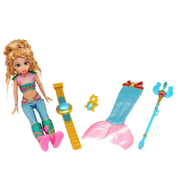 Кукла имеет подвижные суставы, что позволяет принимать разные позы и динамичные игры. В набор входит трезубец, символизирующий морскую мощь и волшебство, а также сменный хвост русалки, идентичный тому, который вы видели в сериале. Эти элементы позволяют воссоздавать свои любимые сцены или придумывать новые подводные приключения.