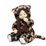 Текстильная кукла Тиана с двумя косами из буклированной пряжи шоколадного цвета. На Тиане классное свободное кигуруми «Леопард». Кигуруми сшито из шелковистого меха с леопардовым принтом, спереди с застёжкой на три пуговки яркого ягодного цвета. Капюшон с ушками, внутри которых вшит нежно-розовый софт. Сзади кигуруми вшит длинный хвост леопарда. Низ рукавов и штанишек собраны на резиночки. На ножках у Тианы милые мягкие сапожки из основного меха, с подошвой из плотного молочного цвета флиса.