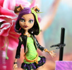 Одна из первых учениц Monster High (Школы Монстров) – дочь оборотня, её зовут Клодин Вульф (Clawdeen Wolf.).