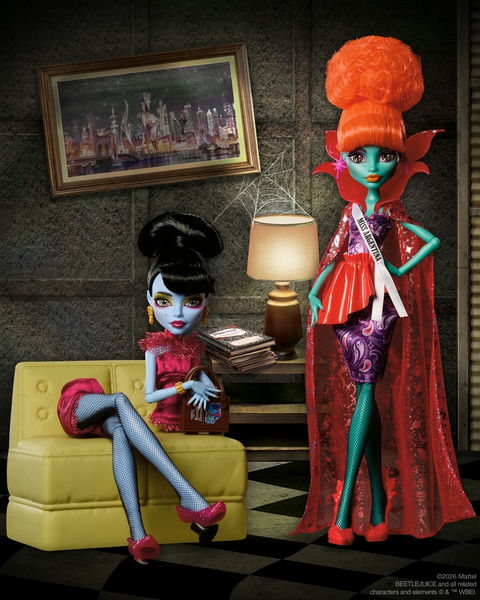 Mattel в феврале 2026 года анонсирует предстоящий выпуск коллекционных кукол Monster High Skullector - Beetlejuice Miss Argentina и