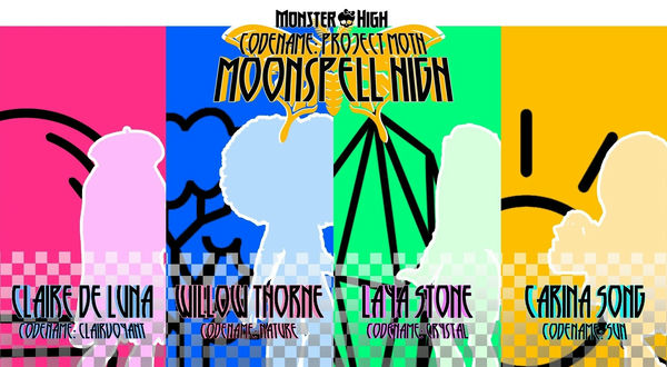 Пока что известно не так много подробностей, но ожидается, что в линейке появятся четыре новых персонажа. Это куклы Monster High Moonspell High: Claire de Luna, Willow Thorne, Laya Stone, Carina Song (Клэр де Луна, Уиллоу Торн, Лайя Стоун, Карина Сонг).