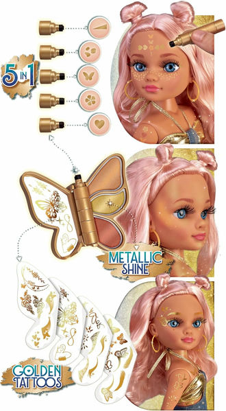 Кукла Nancy Gold с полным набором косметики, карандашом 5 в 1, татуировками и золотистыми тенями - это не просто кукла, а целый набор для творчества!