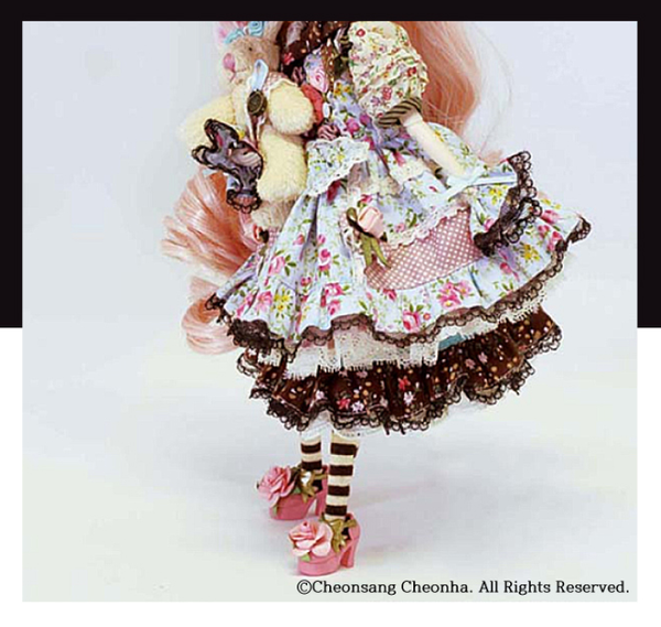 Яркое платье украшено вышитыми цветочными узорами. Кружево, украшающее низ, делает Алису похожей на цветок.