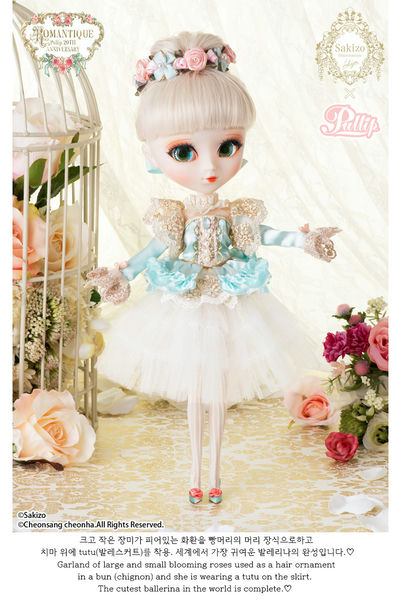 Великолепный шлейф, украшенный кружевами и лентами, спускается с плеч, создавая элегантность, напоминающую французский халат. С головы до пят уделено особое внимание миру "Сакизо", украшенному драгоценностями и кружевами.