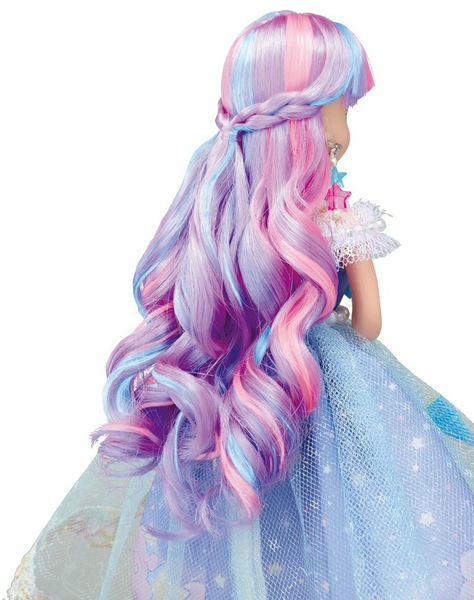 У куклы специальная прическа с трехцветными косичками и локонами, повязка на голову, серьги в форме звезд, воздушный шар в форме звезды с принтом 50-летия Kiki & Lala, накидка, колготки, перчатки, обувь и т. д.