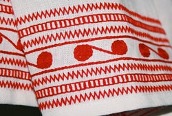 Цвету вышивки придавали большое значение, красный носили молодые, коричневый – замужние, а черный и темно - синий – женщины старшего возраста. Из мотивов использовали волны, спирали, круги, линии, реже букеты, листья и сердца.
