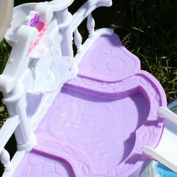 Диаметр бассейна - 32 см. Система подачи воды в бассейн - наливаем в специальное отделение на горке, чтобы вода красиво спускалась ступеньками вниз, в чашу.