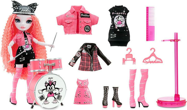 Rainbow Vision Neon Shadow - это линейка кукол с участием новых персонажей Harley Limestone, Uma VanHoose и Mara Pinkett из Shadow High. Эта линия кукол является частью линейки кукол Rainbow Vision. К каждой кукле прилагаются инструменты группы (микрофон для Харли, гитара для Умы и барабаны для Мары).