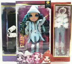 - Rainbow High Fashion Winter Break collection. Новый релиз MGA для коллекции кукол Rainbow High. 6 оригинальных модных кукол получают зимние образы. Зимняя одежда и модные аксессуары. Снежное снаряжение превращается в единственную в своем роде зимнюю тематическую кукольную подставку. Каждая кукла поставляется с лыжами или сноубордом. Они готовы весело провести время, занимаясь зимними видами спорта, а затем нарядиться на зимнюю вечеринку. Некоторые куклы носят зимние шапки, а другие - очаровательные меховые наушники.