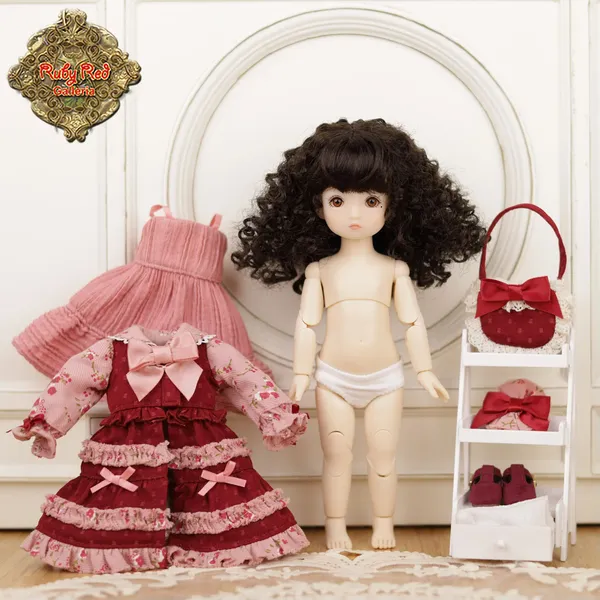 В дополнение к наряду имеется заколка для волос с бантом в тон. У куклы также есть мягкие белые носочки и простые, милые и стильные темно-красные туфельки. И, наконец, сумочка, украшенная красным бантом и элегантной кружевной отделкой.