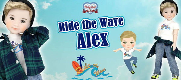 У куклы Алекса светлые волосы, красивые карие глаза и загорелое лицо с веснушками. Поставляется в своей фирменной футболке Ride the Wave, джинсах, клетчатой фланелевой рубашке, черной вязаной шапочке и кроссовках.