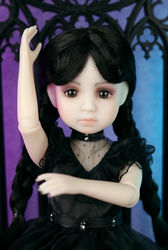 Рост 12 дюймов, полностью подвижна, может стоять самостоятельно. С 9 точками артикуляции.