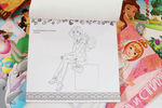 Здесь целых 80 страниц. Необычный формат: почти квадрат, 270x275 мм, с картонной твёрдой подложкой сзади, как планшет. Открывается-перелистывается вверх. Бумага - качественная, белая. В самом начале - страничка с наклейками, на них изображены Барби, а дальше - раскраска.