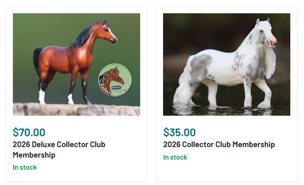 Вы можете присоединиться к клубу коллекционеров Standard или Deluxe. Преимущества обоих клубов включают в себя специальные модели, специальные мероприятия и распродажи, эксклюзивные онлайн-семинары, возможность присоединиться к специализированным клубам и ежегодный журнал Just About Horses.