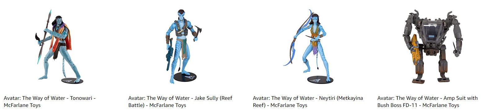 Компания в 2022 году уже выпустила множество фигурок и других предметов коллекционирования, вдохновленных оригинальным фильмом. А в конце года McFarlane Toys представляет широкий выбор новых товаров специально по мотивам продолжения - Avatar: The Way of Water.