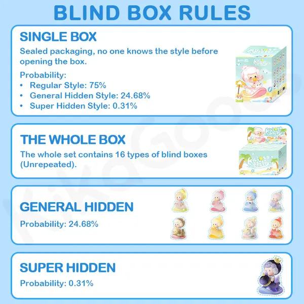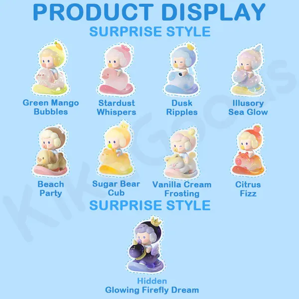 В этой серии очень много фигурок, все они представляют собой малышей на качалках. В коллекции 12 обычных дизайнов и 9 скрытых. Коэффициент производства обычных мини-фигурок составляет 75%, скрытых - 24,68%. Доля super hidden (в серии одна такая фигурка) в производстве составляет всего 0,31%.
