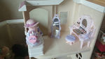 Решила проверить, как в старом салоне будет смотреться туалетный столик и кресло от нового. Кстати, кресло в нем тоже не крутится. Видимо, я перепутала с стульями и креслами от стоматологического набора и от больницы