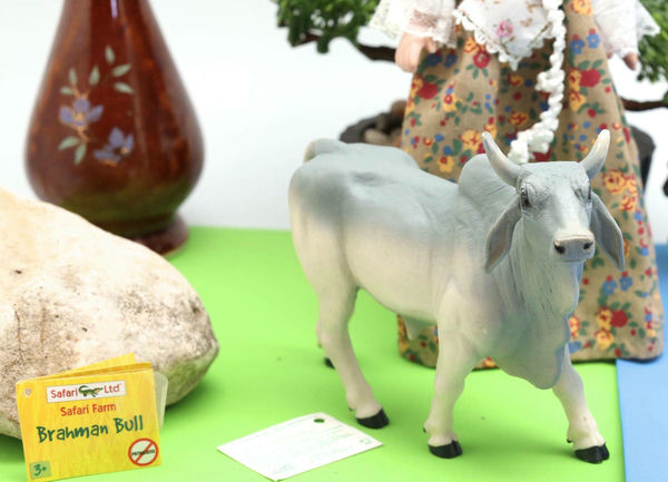 Два брахманских быка рядом с хорваткой. Эта кукла - примерно 18 см высотой.