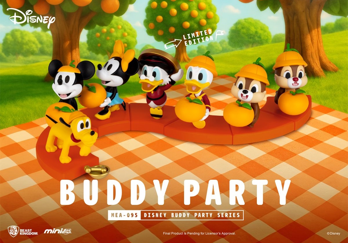 В наборе Disney Buddy Party MEA-095, состоящем из 6 мини-фигурок (продаются поштучно в коробочках-сюрпризах), представлены 6 любимых персонажей в ярких оранжевых нарядах, полных энергии весенней вечеринки! Соберите веселую компанию для пикника на вашей полке!