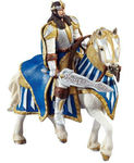 Король сидит в седле верхом на коне, который также облачен в доспехи. Руки фигурки короля подвижны в плечах. Благодаря встроенному магниту фигурка короля надежно держится на лошади. Размер: 15х8,4х18 см.