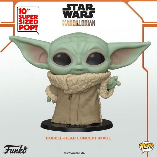 Фанаты теперь знакомы с этим малышом как с Baby Yoda. Данный игрушечный персонаж приходит как в стандартном коллекционном размере линии Funko Pop!, так и в крупной 10-дюймовой (около 25 см) версии.