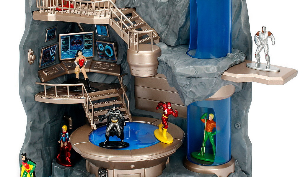 Сцена Нано Metalfigs доступна также в версии Бэтмена, которая включает две эксклюзивные фигурки, загорающийся символ летучей мыши и функционирующие гаражные ворота.